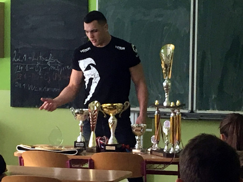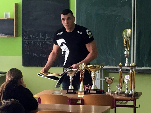V pátek 25. ledna navštívil naši školu Vasil Ducár, momentálně nejlepší boxer ČR ve střední váze, ve světovém žebříčku sídlí na 32. místě. Žáci měli možnost seznámit se nejen s boxem, ale i různými jinými bojovými sporty.