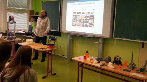 Jednalo se o nejpoužívanější technologii FDM, kdy objekt vzniká vrstvu po vrstvě natavením tenkého proužku plastového materiálu. Společně s přednášejícím, Mgr. Tomášem Feltlem, se pak žáci zamýšleli nad tím, jestli lze pomocí běžných 3D tiskáren vytisknout funkční zbraně, orgány k transplantaci nebo budovy.