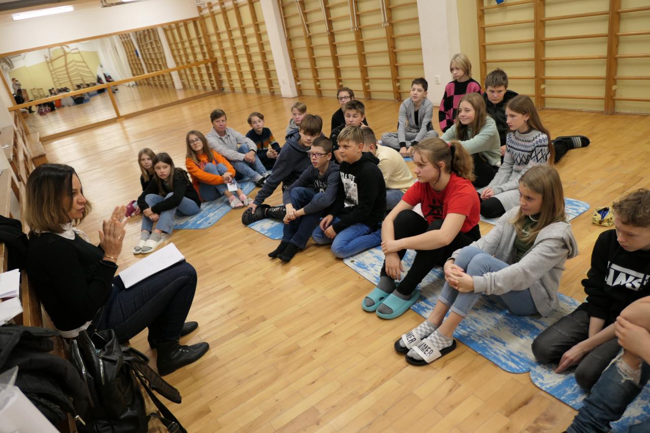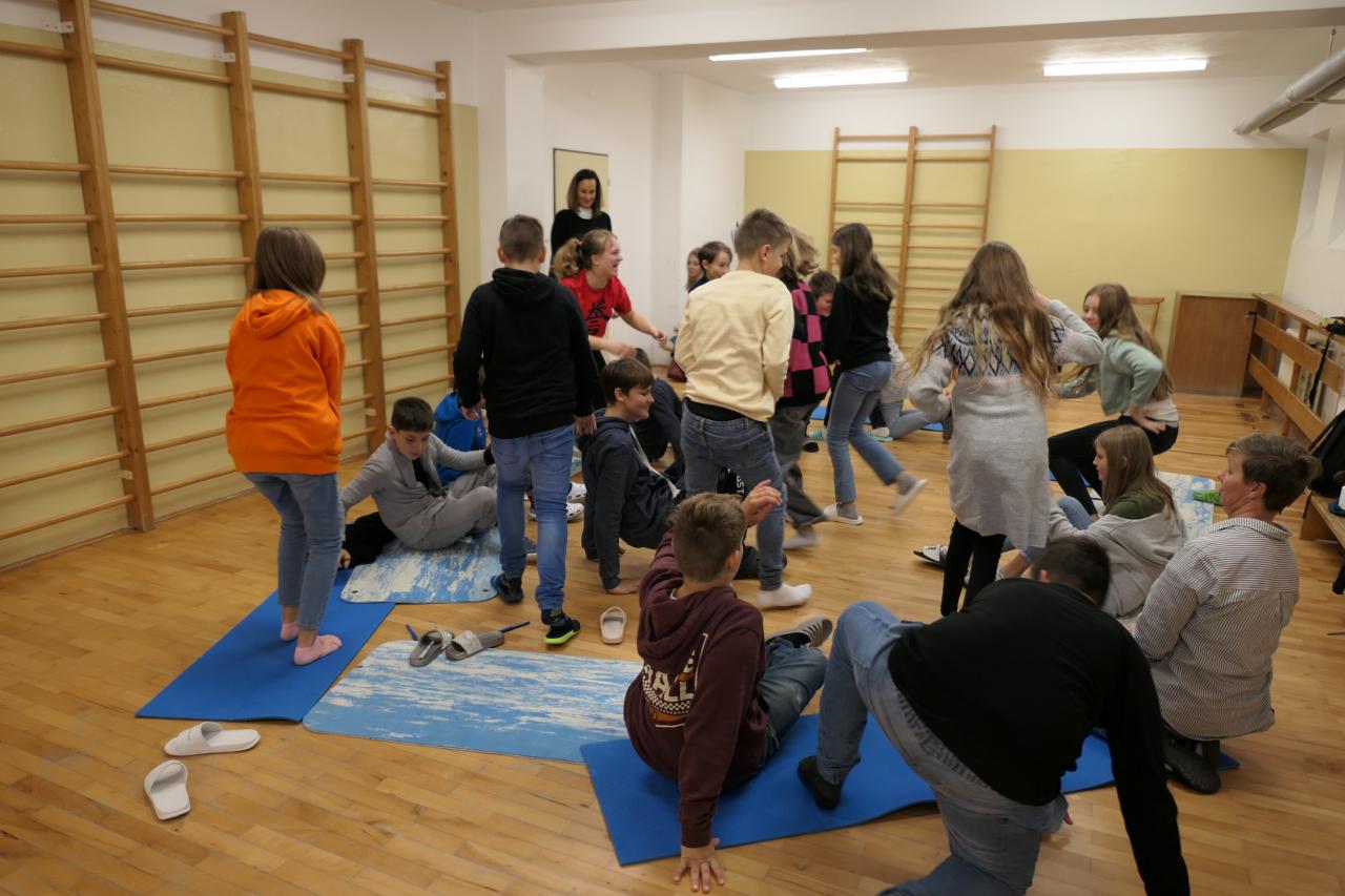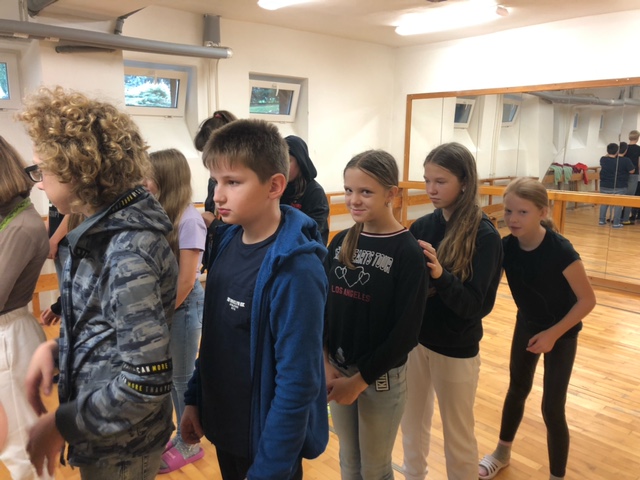 V úterý, 1. 11. 2022, jsme se jako třída přestěhovali na dvě vyučovací hodiny do zrcadlového sálu naší školy. Proč? Adaptační program byl tím důvodem. Stmelit kolektiv, poznat se, dovědět se o svých spolužácích něco víc.