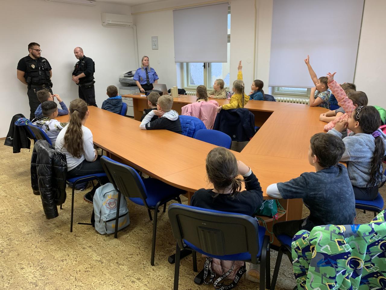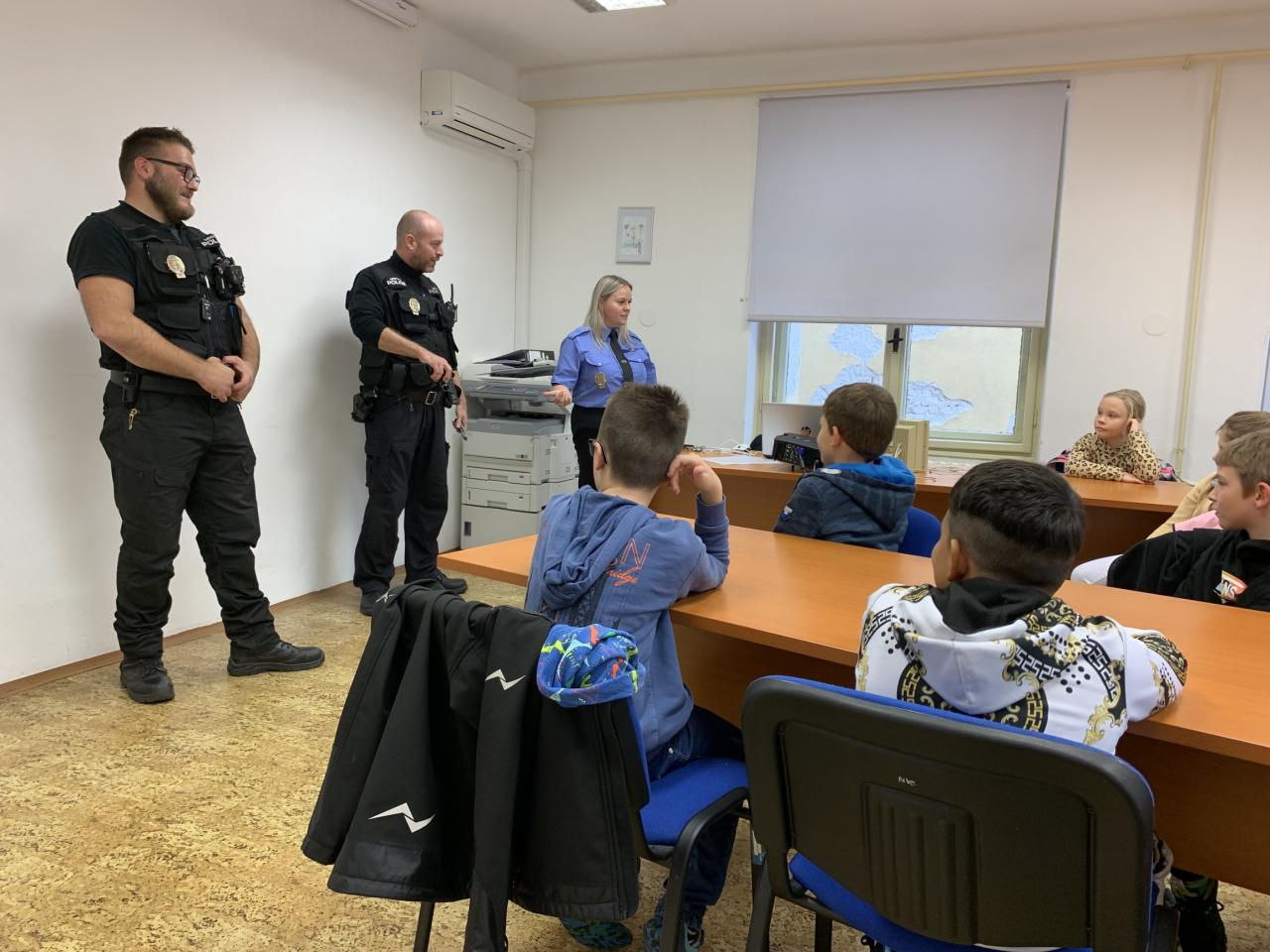 Městská policie Znojmo prodiskutovala se třídou 4. A dne 31.10. 2022 možnosti nebezpečí přítomnosti cizí osoby, ale také předvedla v praxi zatknutí a umožnila dětem nahlédnou do prostor budovy. Poučila žáky o tom, jak se chovat ve virtuálním světě a na koho se v případě jakéhokoliv nebezpečí obrátit. Žákům se na policii velice líbilo.