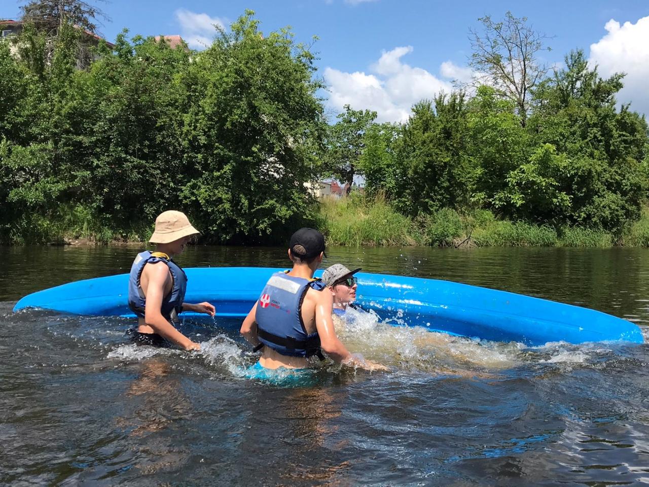 Letošní žáci 8. B v pondělí 26. června sjížděli řeku Dyji od Vodáckého centra pod Znojemskou přehradou do Tasovic. Po krátké instruktáži a přebrání výbavy jsme postupně nasedali do kánoí a vydali se na plavbu. Spousta z nás vodu znala, jen vodácké nováčky instruktoři naučili základní držení pádla, správné ovládání kanoe, čtení vody, tedy správnému výběru stopy plavby. Sjeli jsme 3 jezy a někteří si také vyzkoušeli, jaké to je „cvaknout se“ díky spolužákům. Celou cestu nás provázelo sluníčko a dobrá nálada.