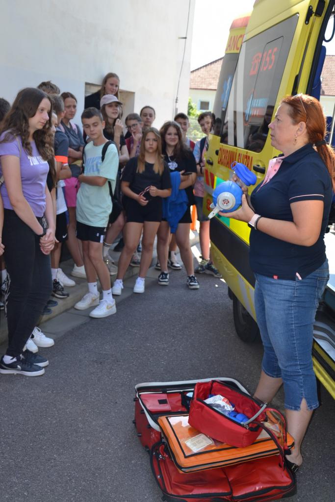 Předposlední školní den se žáci 7. A a 8. B vydali na malou exkurzi na záchrannou zdravotnickou službu do Znojma. Zde se seznámili s vybavením sanitky a prací záchranáře.