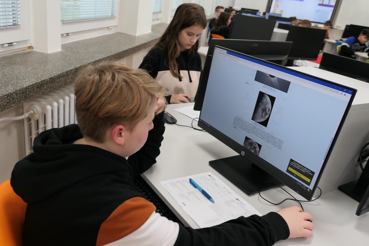 Astronomická olympiáda je soutěž pro žáky 6. - 9. ročníku, kteří mají větší zájem o astronomii a kosmonautiku. Letošní školní kolo probíhalo v pondělí 21. listopadu a ve středu 23. listopadu. Na vyřešení zajímavých úkolů měli žáci 40 minut s použitím libovolných pomůcek.