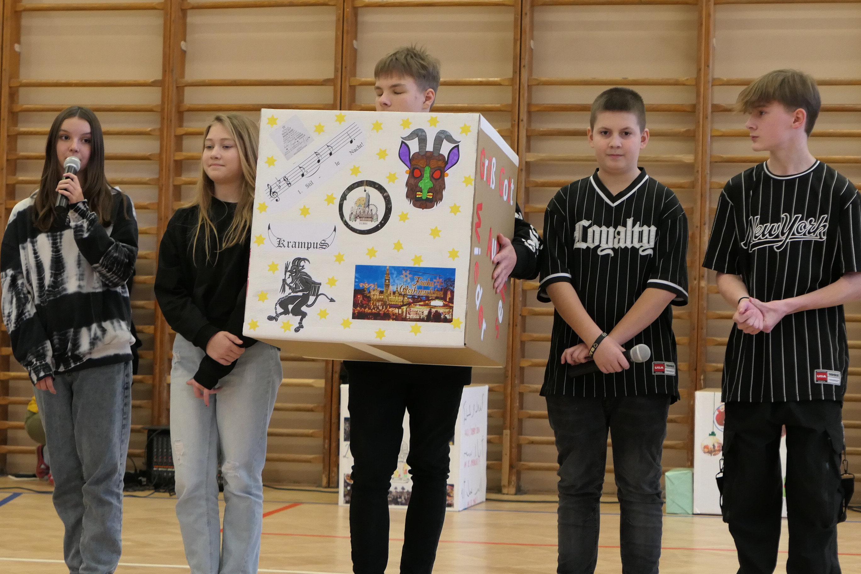 Sousední Rakousko (7. B) si potrpí na vánoční výzdobu, perníčky i voňavý štrúdl. Při tradiční štědrovečerní půlnoční mši všude zní jedna z nejznámějších vánočních písní - Stille Nacht (Tichá noc), která poprvé zazněla v roce 1818 v rakouském městě Oberndorf u Salzburku.