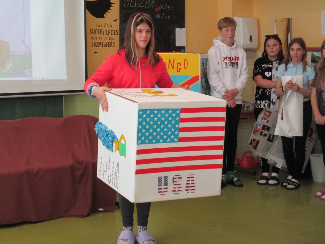 Žáci šestého ročníku viděli velké finanční a sociální rozdíly mezi svými zeměmi. Spojené státy americké patří mezi nejbohatší státy světa, žije v nich asi 337 milionů obyvatel. Celý svět zná americké prezidenty, sportovce nebo zpěváky. A také herce. Snad nejslavnější americká rodina žije ve Springfieldu, tvoří ji Homer + Marge + Líza + Bart + Maggie Simpsnovi, kteří se jako typičtí Američané předvedli i šesťákům.