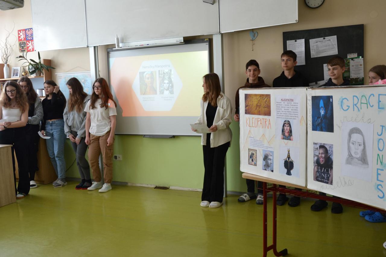 Proto si jednotlivé třídní kolektivy vybraly zajímavé osobnosti své země a seznámily s nimi žáky z paralelní třídy.