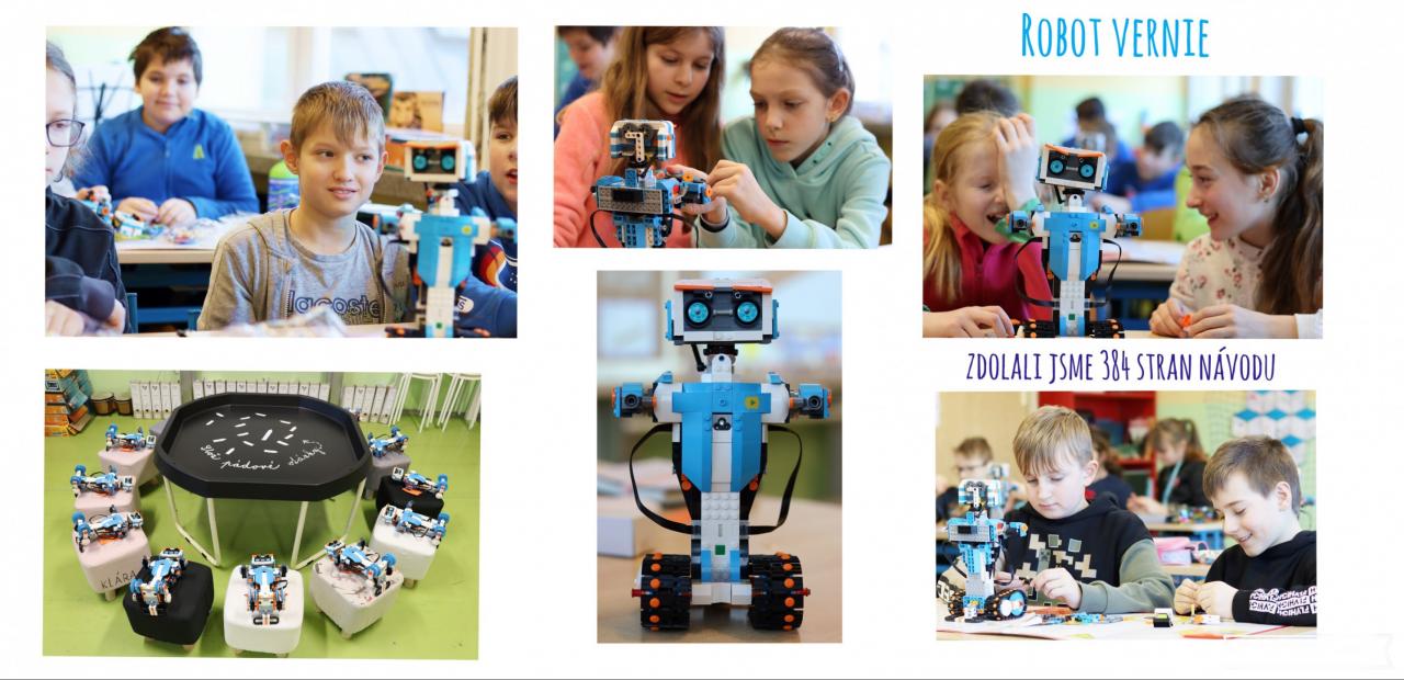 Robot Vernie od LEGO BOOST je skvělou pomůckou a průvodcem do světa programování. Informatika se tak stává předmětem mnohem zábavnějším. Sestavit roboty podle návodu nám trvalo týden a jednoduché to nebylo. Museli jsme překonat úskalí všech 384 stran návodu a neudělat jedinou chybu v sestavování.