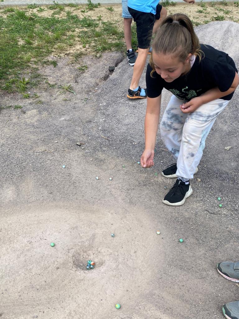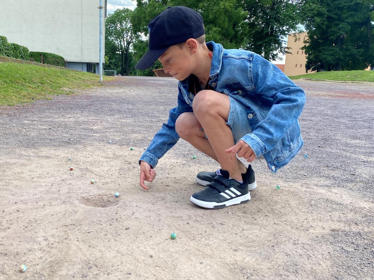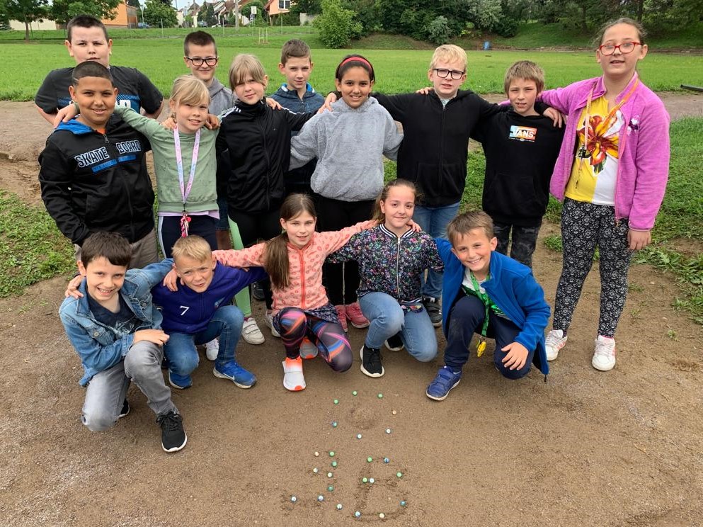 Žáci prvního stupně v minulém týdnu bojovali v třídních kolech turnaje v kuličkách a do finále postoupil vždy jeden zástupce ze třídy. Dnes, 15. června, se pak vítězové třídních kol sešli na školním hřišti, aby porovnali své dovednosti a šikovnost v této již částečně zapomenuté hře. Všichni soutěžící šli do hry s vervou, ale také si navzájem fandili.