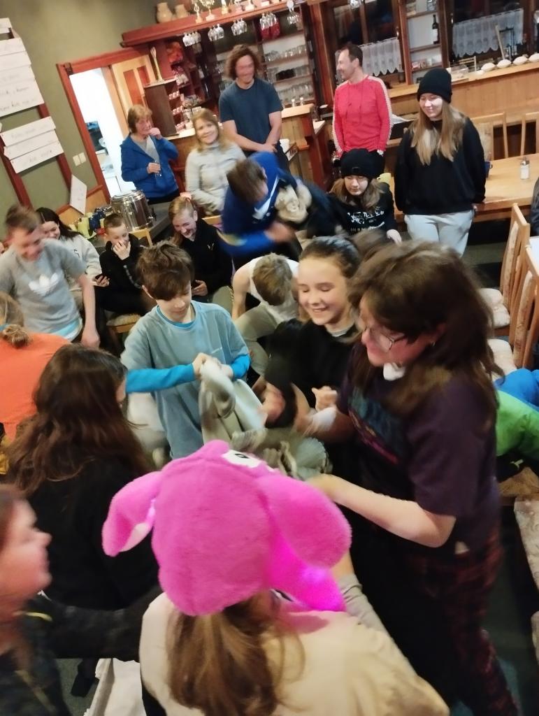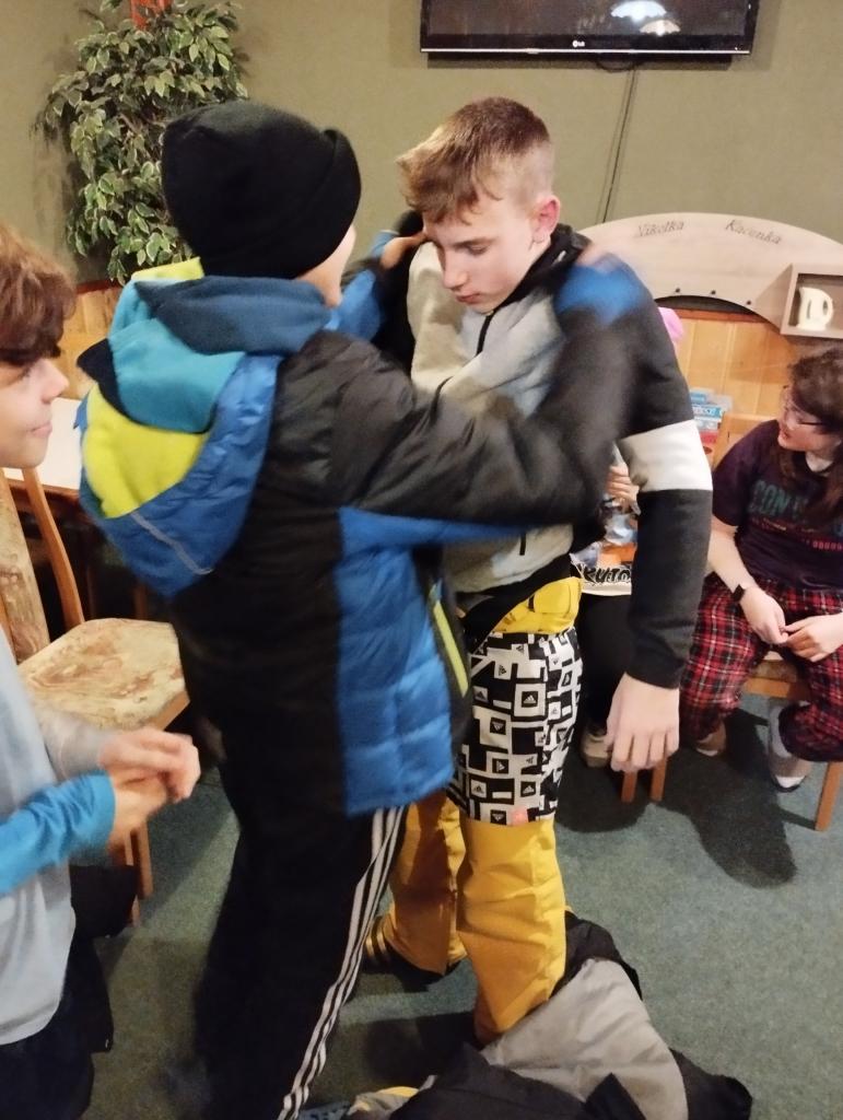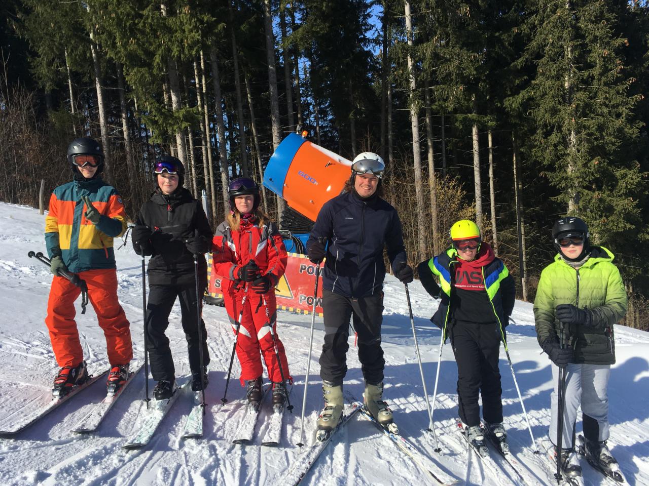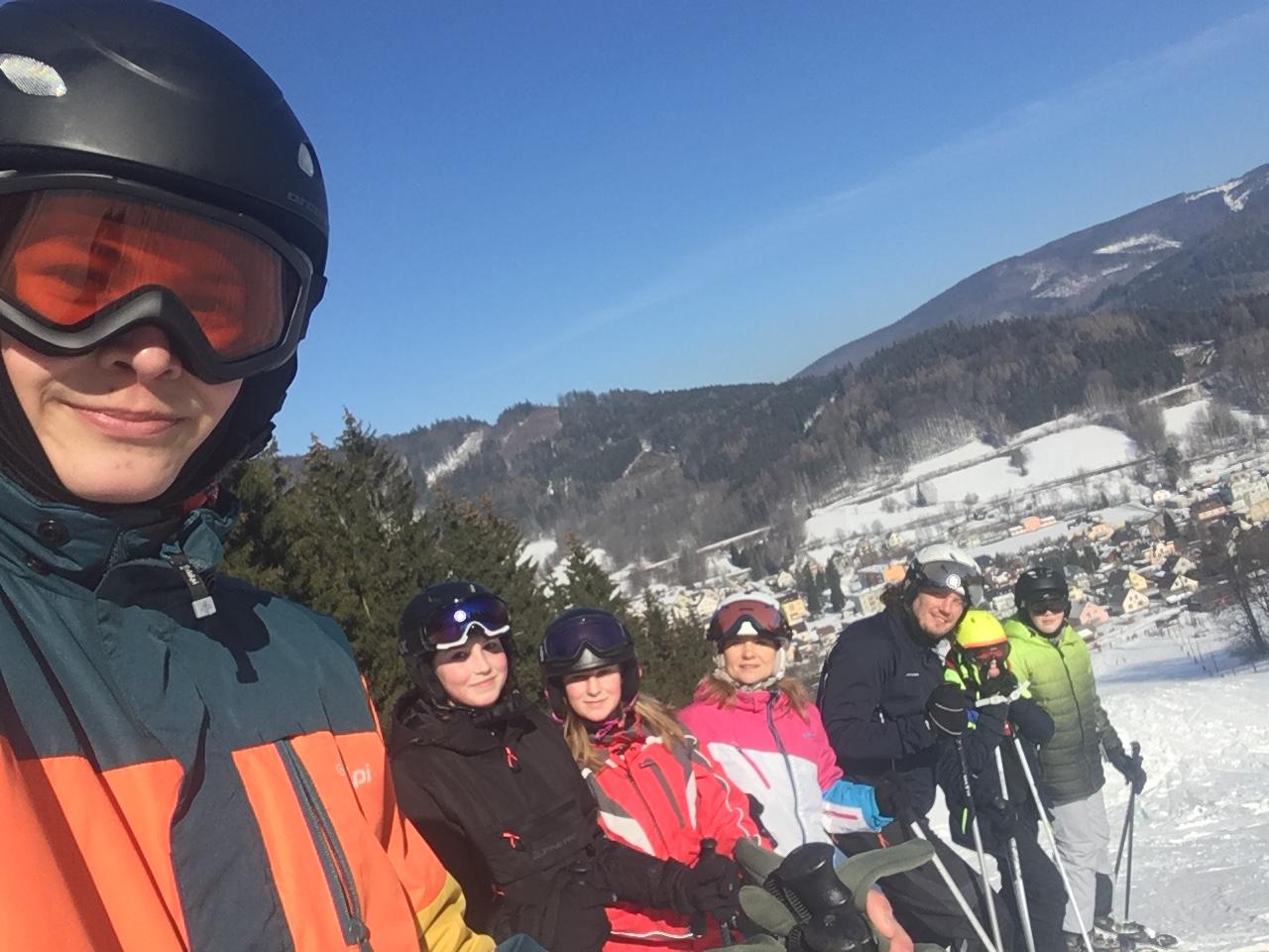 Neřekli byste, jak tady rychle běží čas. Dnešní krásný slunečný den jsme svištěli na sjezdovce dopoledne i odpoledne. Kresby oblouků na sjezdovce potvrzovaly naši přítomnost a stále dokonalejší a jistější jízdu svahem. Drobné přestávky jsme si opět zpestřovali sladkým občerstvením. Horká čokoláda se šlehačkou – mňam. I párky v rohlíku přišly vhod. A k obědu dva druhy pizzy!!