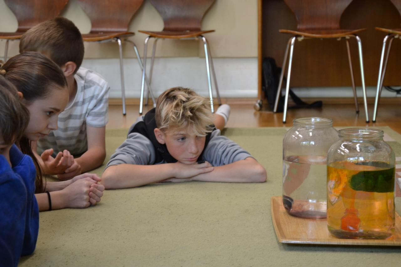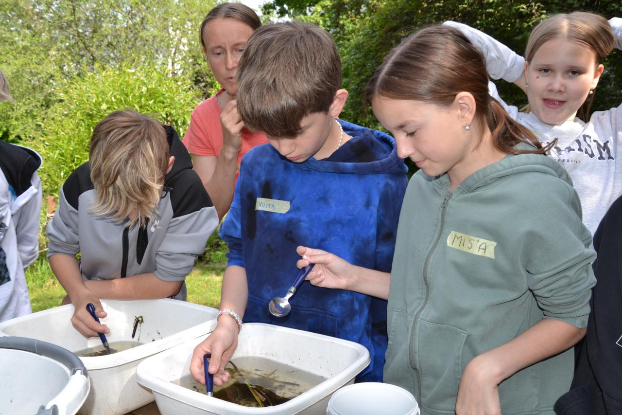 6. A absolvovala program Život v rybníce. Zabývali se otázkou, proč ryby v rybnících hynou. Zjistili souvislosti mezi sinicemi, bezobratlými živočichy a obratlovci. Veškeré vztahy mezi živými organismy může narušit lidský faktor.