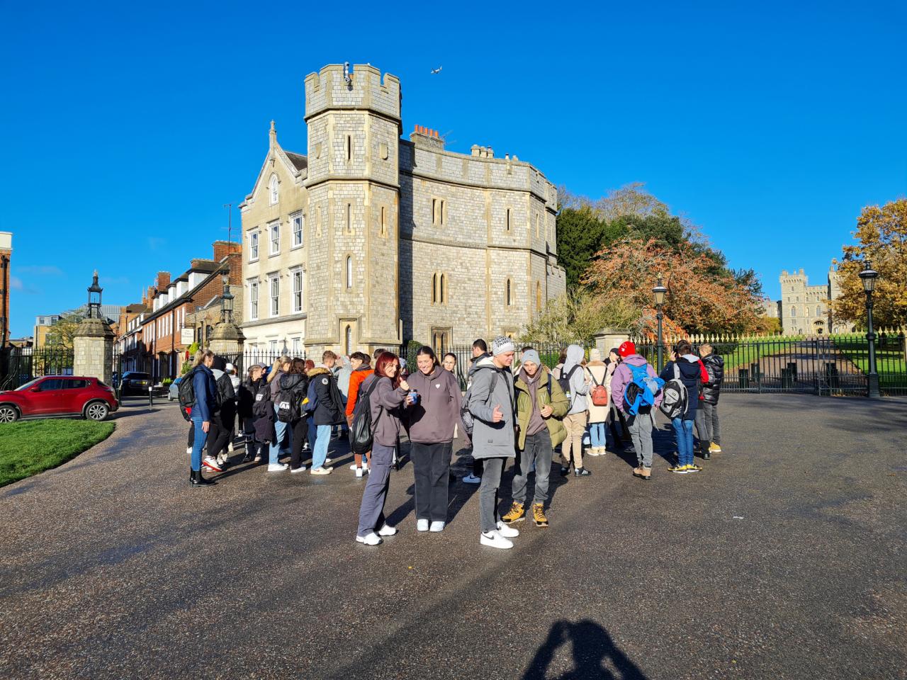 Následovala procházka přes řeku Temži do městečka Eton, kde je slavná chlapecká střední škola Eton College, kterou navštěvovali princ William a Harry. V okolí jsme potkali zdejší studenty ve školních uniformách a v přilehlé High street jsme obdivovali anglickou architekturu.