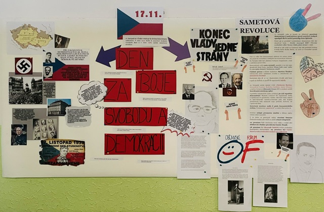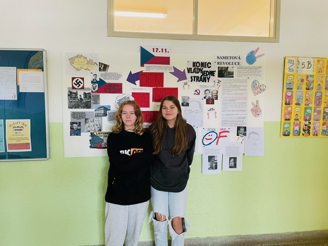 Tento státní svátek si pro nás připravili žáci devátých ročníků. Ti zpracovali obě události a Kamča Koktová přečetla prostřednictvím školního rozhlasu, co se v tento významný den odehrálo.