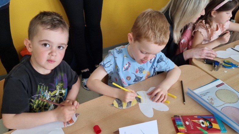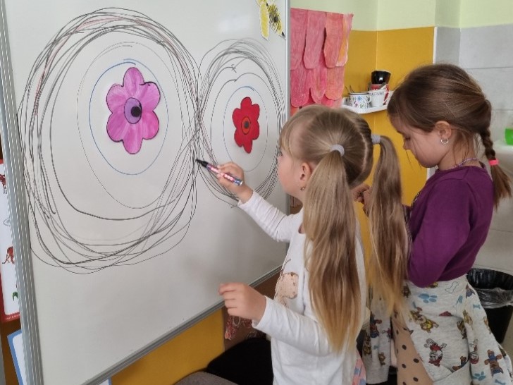 Ve čtvrtek 11. dubna proběhlo na naší škole druhé setkání grafomotorického kroužku. Děti se dozvěděly základní informace o včelách, které si následně vyrobily. V rámci procvičování jemné motoriky malovaly let včelky kolem květů, jezdily autem, létaly letadlem, malovaly v mouce.