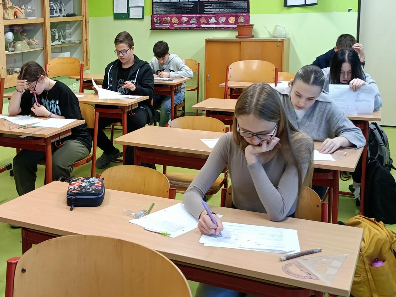 V pondělí 15. 1. 2024 si naši deváťáci ve škole vyzkoušeli přijímací zkoušky nanečisto. Řešili úlohy, které byly na přijímacích zkouškách v prvním termínu v roce 2020. Časový limit a všechny další podmínky byly stejné, tak jak je budou mít při skutečných přijímacích zkouškách na střední školy. Celkem se této akce, na které si žáci měli přiblížit podmínky a časový rozsah přijímací zkoušky, zúčastnilo 31 žáků z 9. A a 9. B.