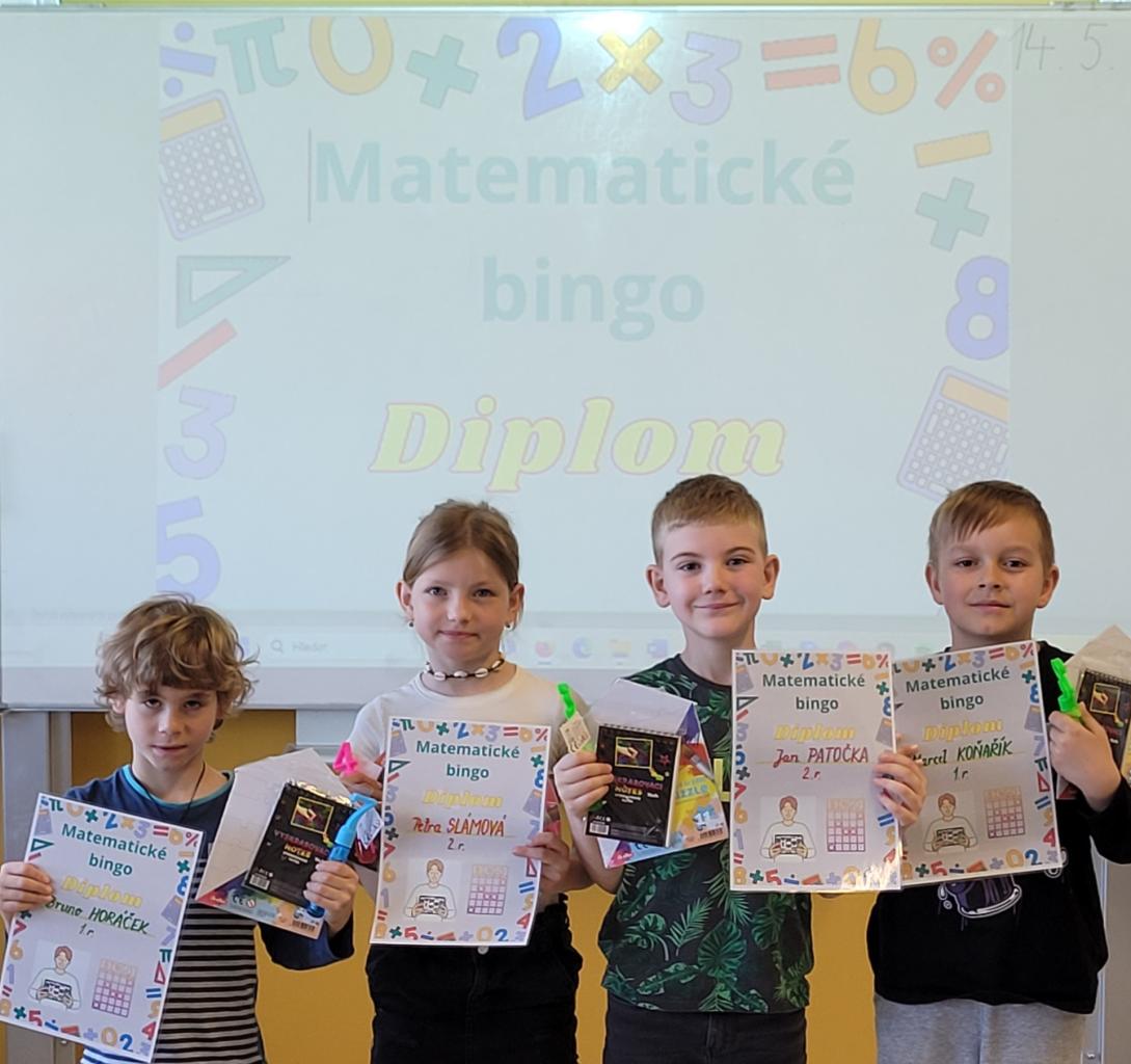 Žáci v první a druhé třídě si mohli od 2. - 10. 5. 2024 vyzkoušet hru, ve které člověk potřebuje nejen správně počítat, ale mít i trochu toho štěstí. Hra, o které je řeč, se nazývá Matematické bingo.