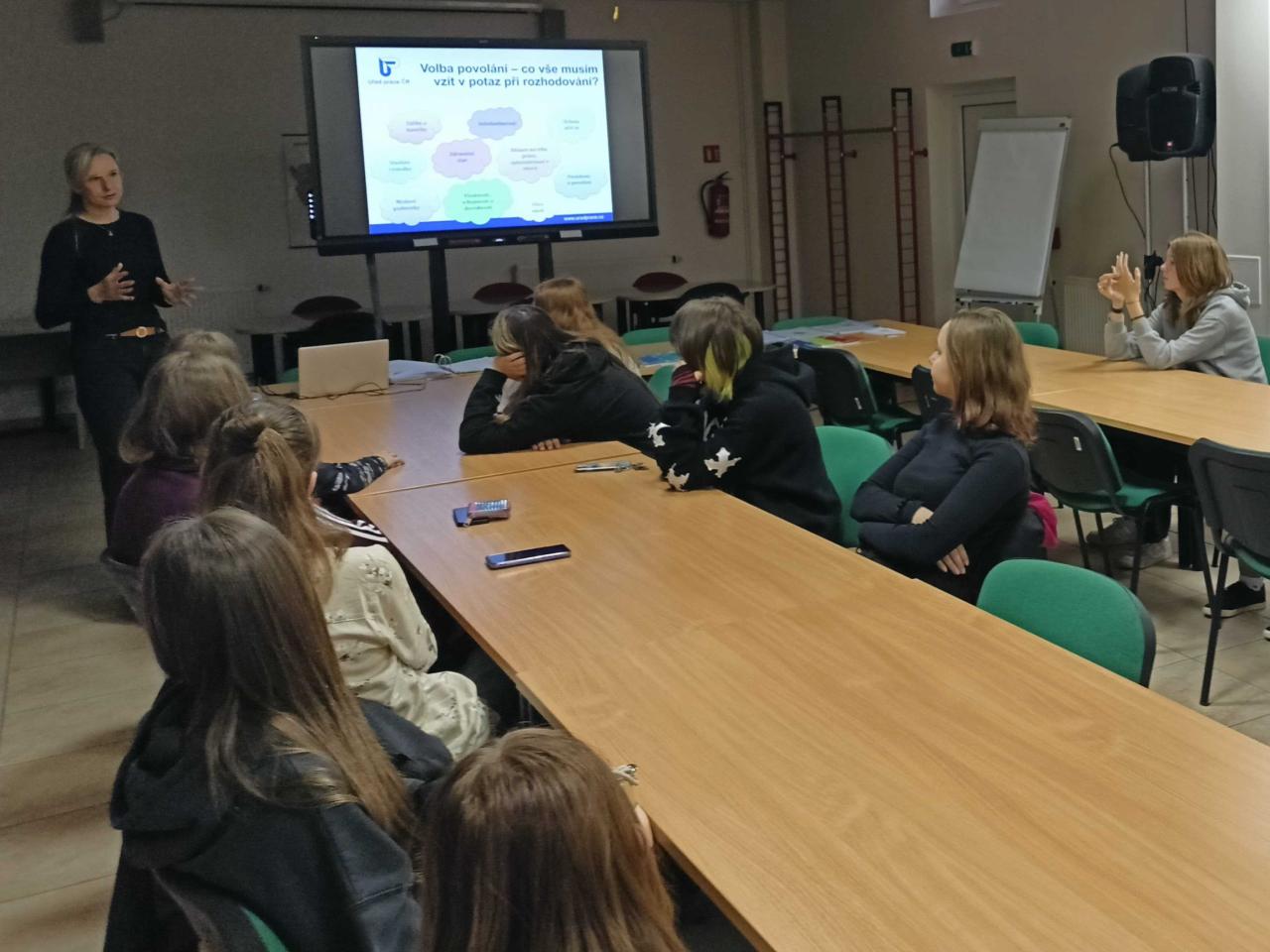 Přednáška s besedou na téma výběru středních škol a učilišť. Konečně máme jasnější představu, kde se dozvíme podrobnosti o jednotlivých oborech a kdo může přesvědčit naše rodiče, že by výběr budoucího povolání měl být hlavně na nás. Krátký test se zaměřením na příští studium mnohým potvrdilo správnost rozhodnutí.