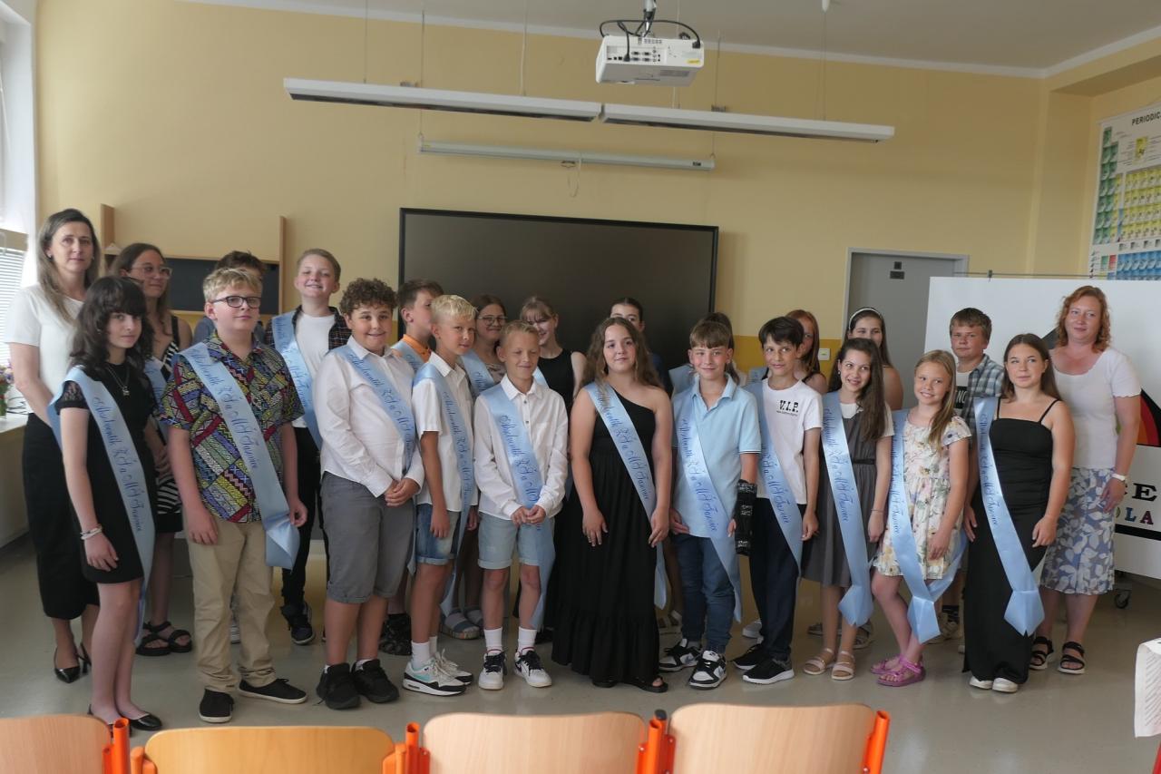 Všichni žáci byli pochváleni za pěkné prezentace a byla jim předána slavnostní šerpa.