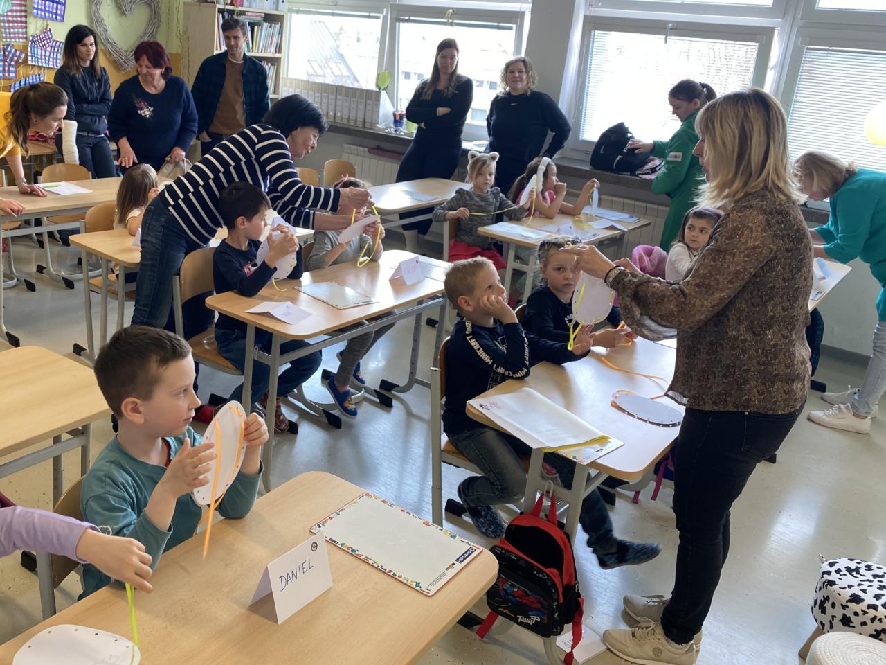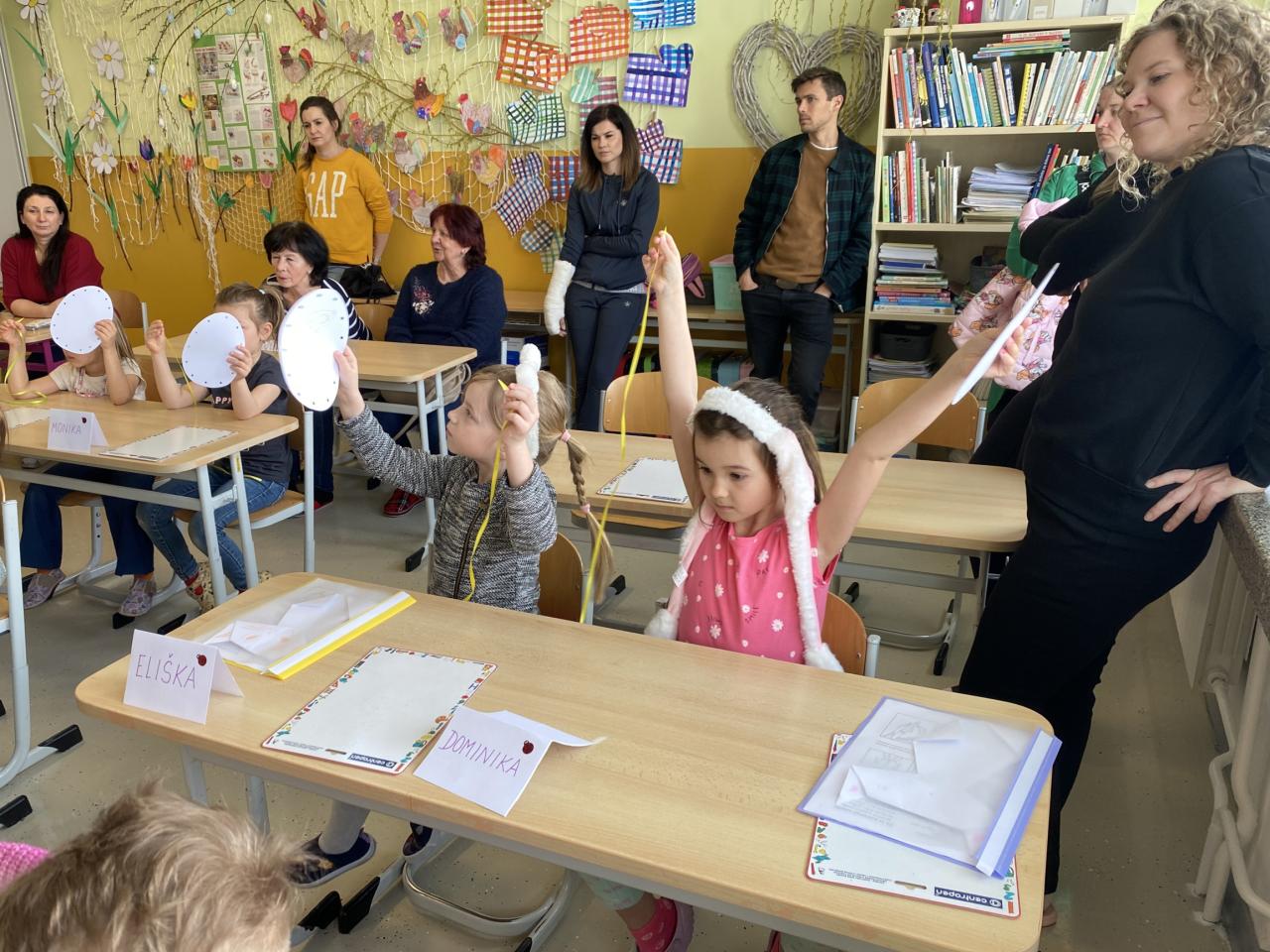 kde děti kroužily kolem kuřátka do oválu, uvolňovaly zápěstí a záprstí.