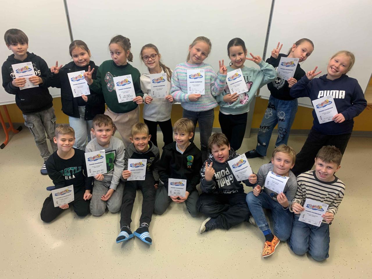 Žáci 3. a 4. ročníku úspěšně zakončili kurz plavání – 10 lekcí od září do listopadu. Závěrečný den byl opravdu pestrý – děti si užily veselou diskotéku přímo v bazénu, připomněly si pravidla bezpečného chování ve vodě a na závěr zaslouženě obdržely mokré vysvědčení.
